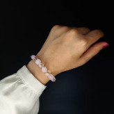 دستبند جذب عشق کوارتز شامل سنگ های استفاده شده کوارتز صورتی و کوارتز کریستال می باشد.دارای قدرت محافظ در برابر سحر و جادو کمک به ارتباط با ارواح و دنیای متافیزیک با تحریک سیستم ایمنی بدن آن را تعادل می بخشدکلیه عکسها توسط تیم گرفته شده و هیچ کدام ژورنالی و غیر واقعی نیستند.