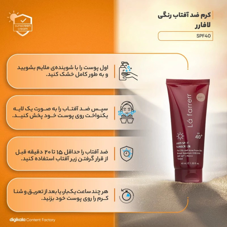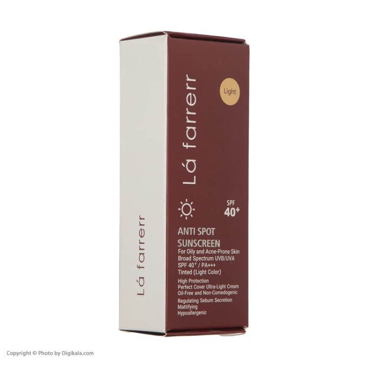 کرم ضدآفتاب و ضدلک رنگی لافارر مدل SPF40-Light، مناسب پوستهای چرب، حجم 40 میلیلیتر