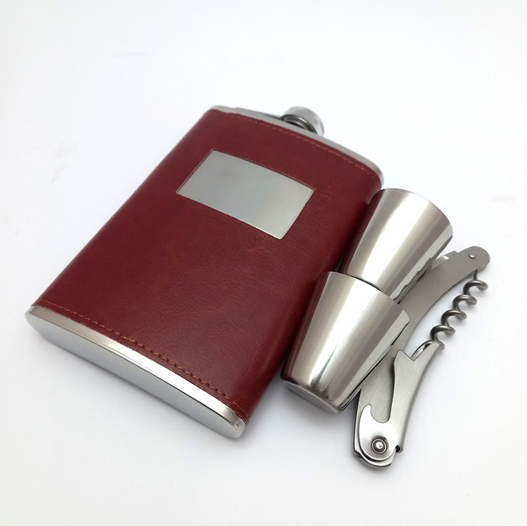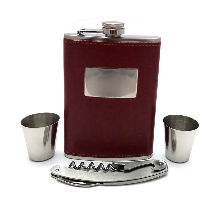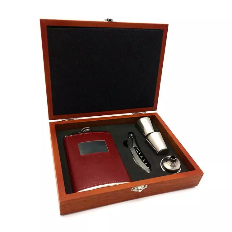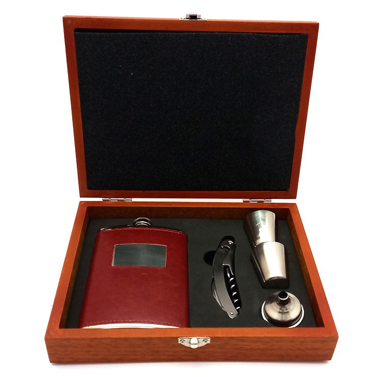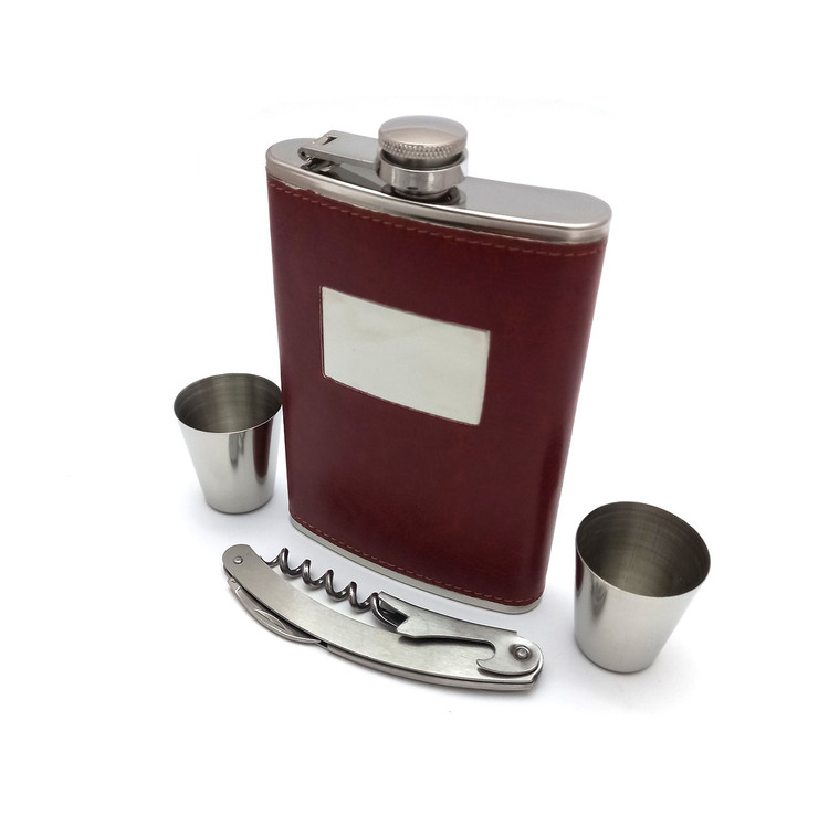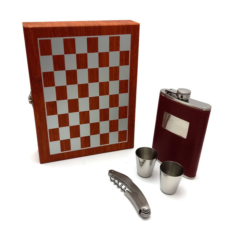 ست کادویی بطری جیبی وجعبه شطرنج - طرح چرم رنگ قهوه ای کد502(پس کرایه )