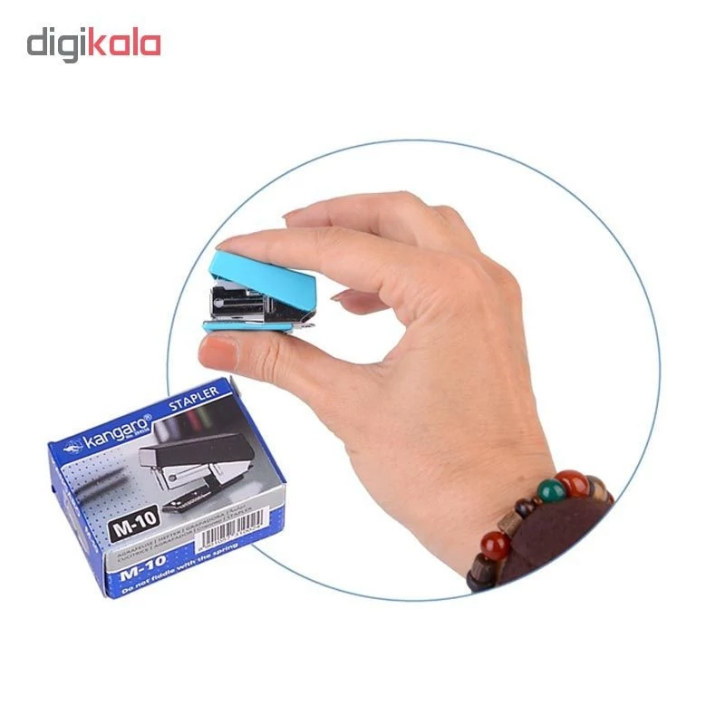 دیدن این مینی منگنه کوچک و در عین حال کارآمد شما را متعجب می سازد. منگنه برند کانگورو مدل m10 یکی از کوچکترین منگنه ها ی دنیاست که به راحتی در داخل مشت دست شما پنهان می گردد و می توانید در هر جایی همراه خود برده و استفاده نمایید. بدنه این دستگاه منگنه از فلز مقاوم ساخته شده و دارای ابعاد 2.5*1.5*3.5 سانتی متری است. در داخل این منگنه می توانید 50 عدد سوزن سایز 10 را قرار دهید و قدرت منگنه تا 10 کاغذ روی هم را پوشش می دهد. استحکام بدنه این دستگاه عالی بوده و یکی از پر طرفدارترین منگنه هاست که دانش آموزان به راحتی می توانند در داخل جامدادی خود قرار داده و حمل نمایند.
