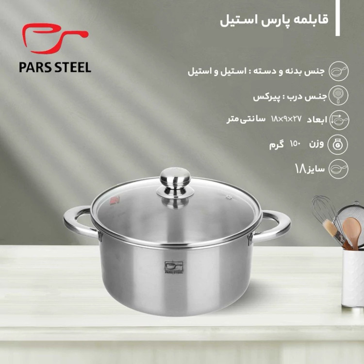 قابلمه پارس استیل مدل سه لایه کد 180 سایز 18