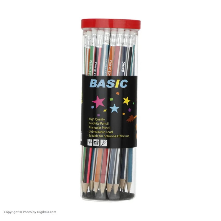 مداد مشکی یکی از پرکاربردترین لوازم ابزار به عنوان لوازم تحریر خواهد بود. فرم سطح مقطع مداد مشکی بیسیک مدل CXZ000 به صورت مثلثی است؛ فرم سطح مقطع که شکل مثلث باشد، دست بهتر میتواند آن را نگه دارد. شما زمانی که این مداد را در دست نگه میدارید، تکیه گاه مداد به دست نشسته و باعث کنترل بهتر هنگام نقاشی یا نوشتن خواهد شد. در این جعبه، تعداد 48 عدد مداد مشکی قرار گرفته که میتوان از ان برای مدت طولانی برای فعالیتهای خودتان استفاده کنید. یکی از مزیتهای مداد مشکی بیسیک مدل CXZ000 پاک کنی است که به صورت سرخود روی مداد قرار دارد؛ این پاک کن باعث شده تا بتوان اشتباهاتی را که روی کاغذ مرتکب میشویم، پاک کنیم تا نظم و نظافت بیشتری در نقاشی یا نوشتن داشته باشیم. طول مداد معادل 19 سانتیمتر است که بلند و مناسب برای دستان بزرگ یا به طور کلی قلق گیری هنگام نوشتن است.