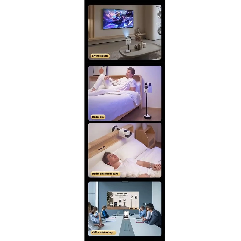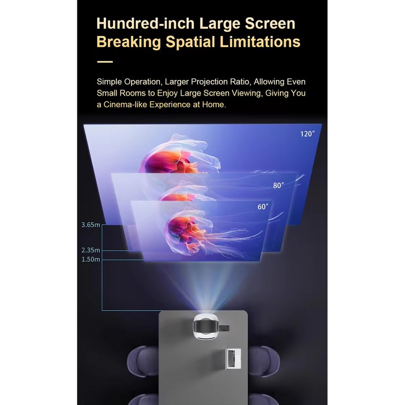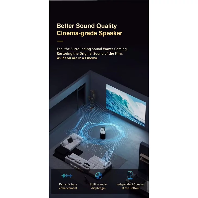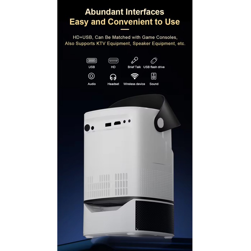 اگر دنبال یک ویدیو پروژکتور با امکانات کامل هستید به گونه ای که تمام دغدغه هالی شما را برطرف کند پیشنهاد ما ویدیو پروژکتور بنیوس مدل BE-VP05 با سیستم عامل اندرویداست.این ویدیو پرژکتور به راحتی تصویر را بر روی دیوار یا سقف یا پرده با کیفیت بالا انتقال میدهد و از فاصله 1.5 متر تا 3.65 متر میتواند تصویر با سایز 60 تا 120 اینچ را برای شما به نمایش بگذارد.این ویدیو پرژکتور از تصاویر 4K پشتیبانی می کند همچنین دارای قابلیت تنظیم فوکوس اتوماتیک است.ظرفیت حافظه این دستگاه 32 گیگ و رم آن 2 گیگ می باشد.اسئیکر این دستگاه دارای توان خروجی 5 وات با قابلیت پرتاب 360 درجه می باشد.این ویدیو پروژکتور دارای قابلیت تنظیم ارتفاع و زاویه است ارتفاع آن تا 75 سانتی متر قابلیت افزایش دارد.این دستگاه از اتصال بلوتوث و WIFI6 پشتیبانی می کند.پشت این دستگاه درگاه USB,AUDIO,HDMI,AV,Power interface تعبیه شده است.دسته کحافظ لنز یکی از قسمت های کاربردی برای محافظت از لنز دستگاه می باشد که در حالت باز نقش دسته حمل را نیز ایفا می کند.قابلیت Supper Cooling Fan علاوه بر نویز ئایین انتقال حرارت خوب را با محیط برای افزایش طول عمر دستگاه ایفا میکند.