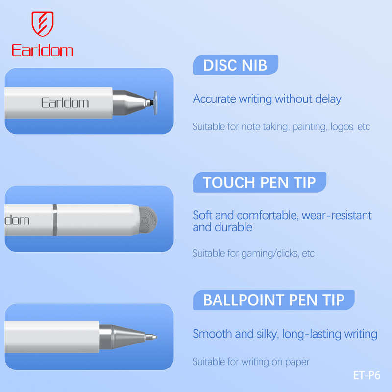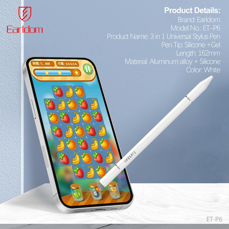 قلم لمسی ارلدام مدل Stylus Pen 3IN1 P6