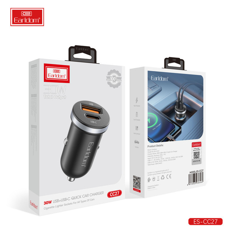 شارژر موبایل خودرویی ارلدام مدل ES-CC27 یک شارژر فندکی باکیفیت، کوچک و بسیار کاربردی است. این محصول دارای دو پورت خروجی است، یک تایپ سی و یک USB. با توجه به وجود 2 پورت خروجی روی شارژر ارلدام ES-CC27 می توانید همزمان دو دستگاه مثلا همزمان دو موبایل را شارژ نمایید. در اینصورت راننده و سرنشین دیگر داخل به طور همزمان و اشتراکی از فناوری شارژ بهره مند می شوند. شارژر خودرویی ارلدام ES-CC27 ابعاد کمی دارد و جنس بدنه ی آن از پلاستیک PC مقاوم در برابر دما و شکستگی است. استفاده از شارژر ایمن برای آنکه کاملا ایمن باشد و به موبایل شما آسیب وارد نکند نکته ای حائز اهمیت است. شارژر فندکی ارلدام CC27 در حین شارژ از دستگاه متصل شده در برابر افزایش جریان/ ولتاژ ، اضافه بار، شارژ بیش از حد و اتصال کوتاه از دستگاه متصل شده محافظت می کند و شارژی ایمن را ارائه می کند .
