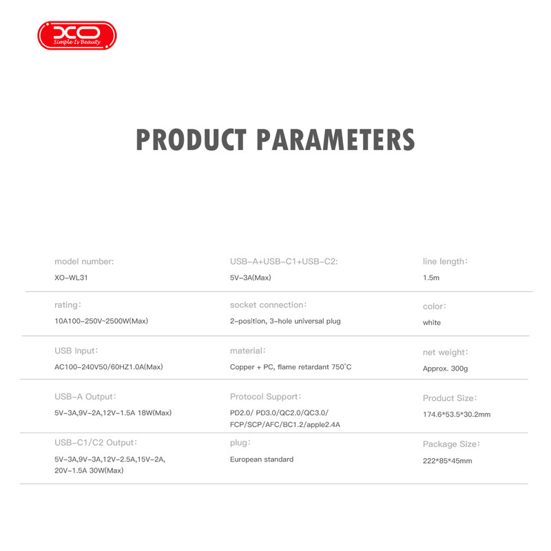 چندراهی برق ایکس او مدل WL31 با طراحی کاربردی و ویژگیهای هوشمندانه، به شما کمک میکند تا به راحتی دستگاههای الکترونیکی خود را به برق متصل کنید و از آنها به طور ایمن استفاده کنید. این چندراهی با طول کابل 1.5 متر و توان 30 وات، انتخابی ایدهآل برای استفاده در منزل، محل کار و سفر است.