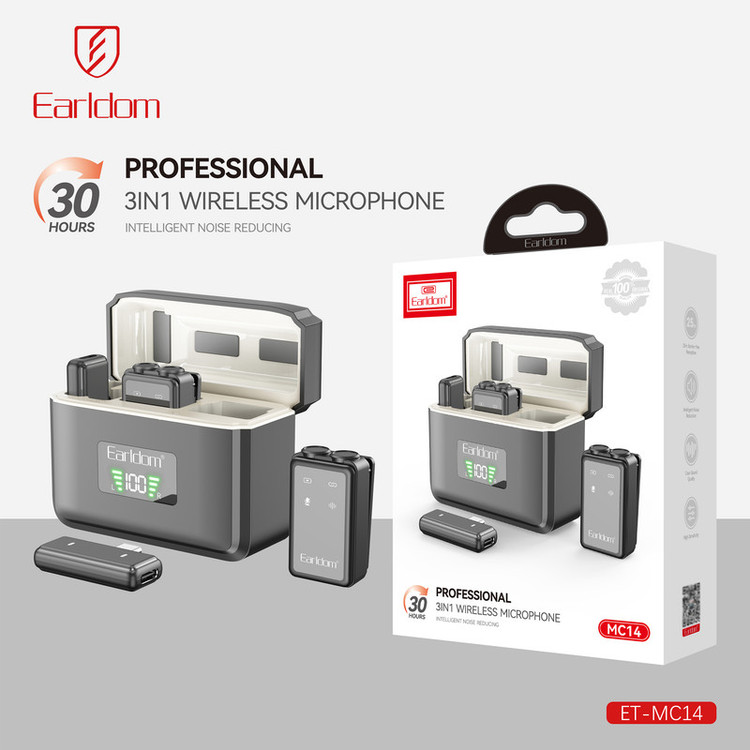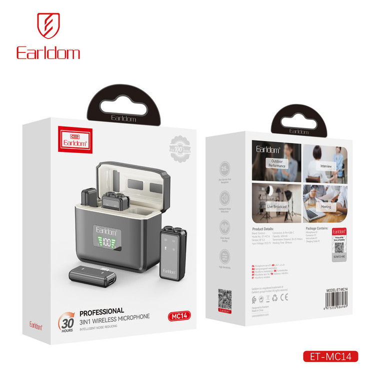 ست میکروفن بی سیم ارلدام مدل 3IN1 MC14 با درگاه اتصال پورت لایتینگ و USB Type C