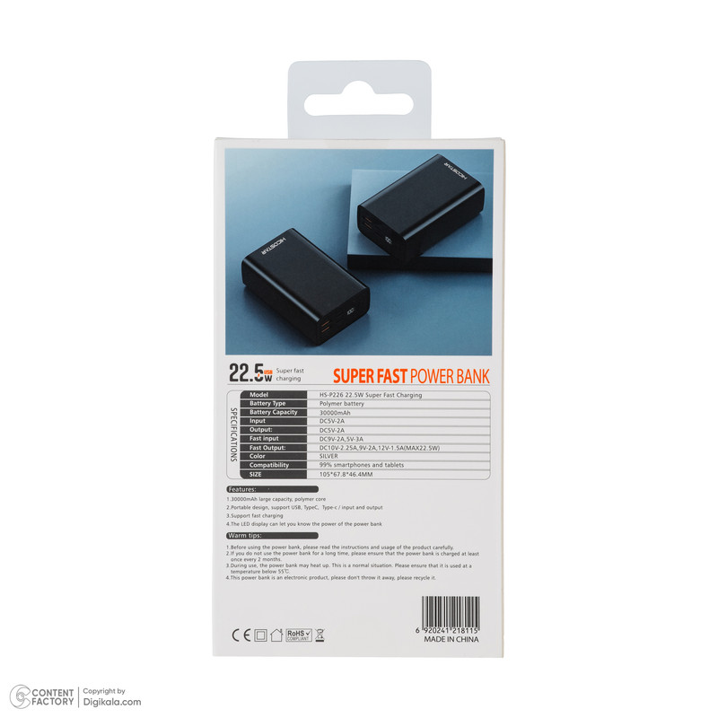 پاوربانک هایکواستار مدل HS-P226 ظرفیت 30000 میلی آمپرساعت