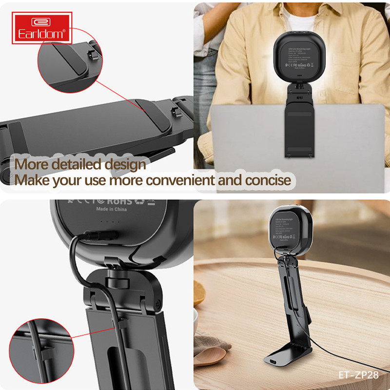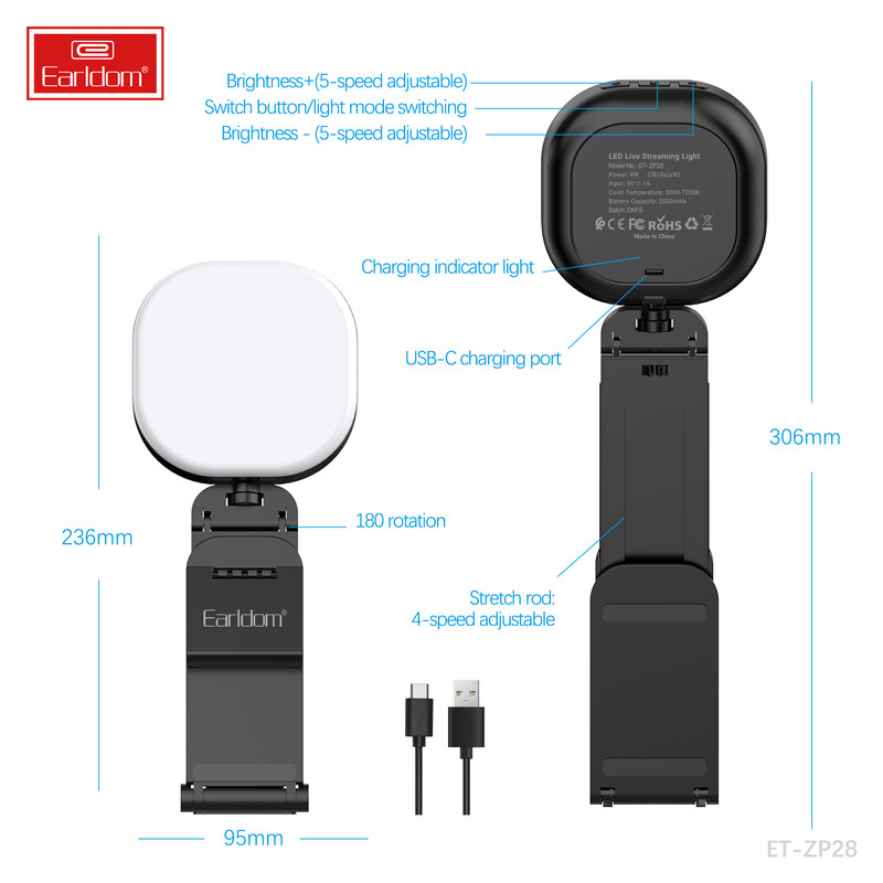 ویژگی ها : این رینگ لایت شارژی بوده و با باتری 2000 میلی‌آمپری از طریق پورت USB Type-C قابل شارژ است و قابل اتصال بالای مانیتور می‌باشد.