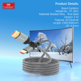 سایر توضیحات : کابل HDMI ورژن 2.1 طول 1.5 متر با ساپورت رزولوشن 8K با سرعت 48 گیگابت بر ثانیه و ضخامت 6.5 میلی متر و محافظت شده با فلز و PVC بافته شده