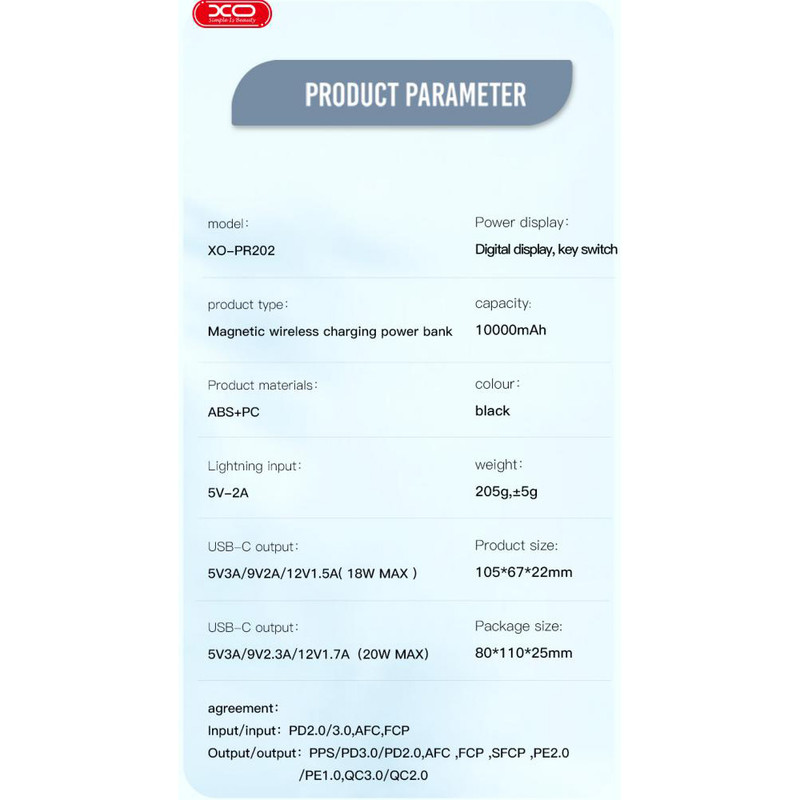 پاوربانک ایکس او مدل pr202 ظرفیت 10000 میلی آمپر ساعت