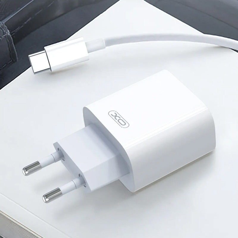 شارژر دیواری 20 وات ایکس او مدل A829 به همراه کابل USB-c به لایتنینگ