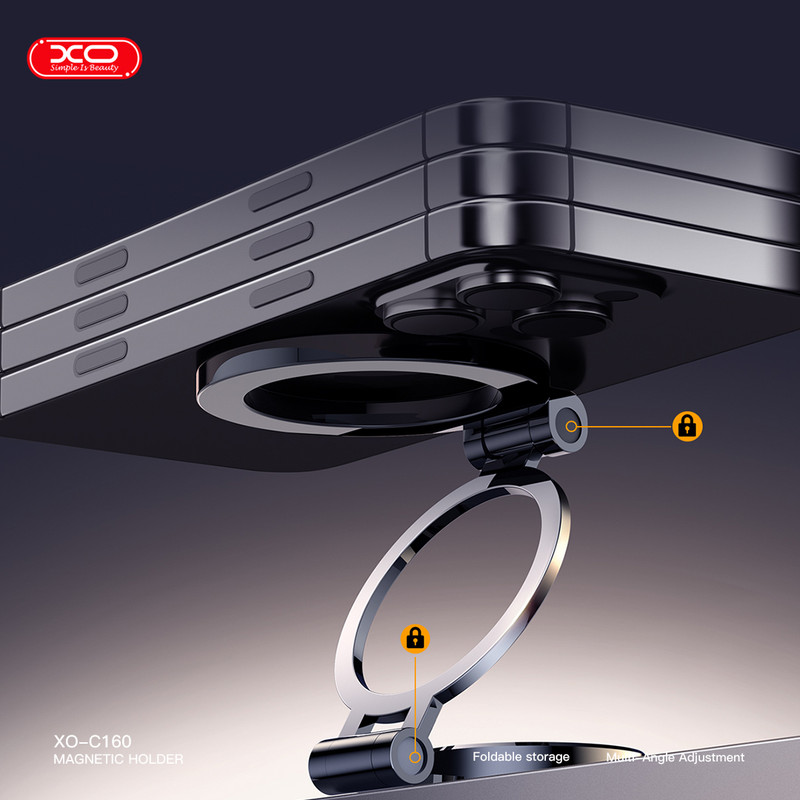 XO-C160 یک هولدر مغناطیسی با طراحی لوکس است که از آلیاژ روی و سیلیکون ضد لغزش ساخته شده تا هم دوام بالایی داشته باشد و هم در استفاده روزمره، کاملاً ایمن عمل کند.