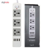 این محصول زیبای کمپانی محبوب و معروف Havit دارای طرحی زیبا و کیفیتی بالا است که مناسب برای شارژ و برق رسانی می باشد. پریزهای این سه راهی دارای درپوش محافظ بوده و دستگاه نیز دارای کلید قطع و وصل میباشد.رابط سه راهی برق و هاب شارژر USB چهار خروجی هویت HV-SP8803 دارای کیفیت فوق العاده بوده است در حقیقت این محصول مجموعه ای از چند راهی برق و شارژر USB است. این هاب از چهار پورت USB و سه پریز برق شهری با قابلیت اتصال سه شاخه و دو شاخه تشکیل شده است. ویژگی جالب این محصول این است که پورت های USB دو نوع خروجی میدهد به این صورت که سه پورت USB دارای خروجی یک آمپر و یک پورت دیگر دارای خروجی دو آمپر می باشد. هر چهار پورت در برابر نوسانات برق محافظت می شوند و به صورت همزمان نیز قابل استفاده اند. این محصول به دلیل کوچک بودن ابعاد فضای زیادی را اشغال نمی کند و برای قرار گیری بر روی میز نیز مناسب است.در راستای بالا بردن ایمنی محصول شرکت هویت کلید پاور روی محصول تعبیه کرده است. رابط سه راهی برق و هاب شارژر USB چهار خروجی هویت HV-SP8803 درای قدرت انتقال شدت جریان تا ۱۰ آمپر می باشد.