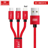 کابل تبدیل USB به USB-C / MicroUSB / لایتنینگ ارلدام مدل EC-IMC015 طول 1.2 متر