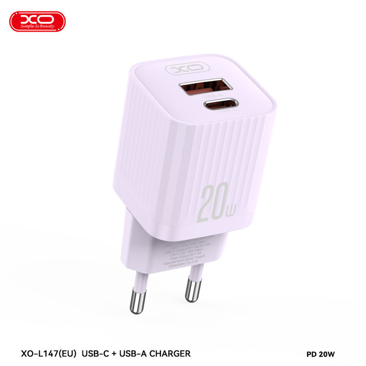 شارژر دیواری 20 وات دو پورت ایکس او مدل L147
