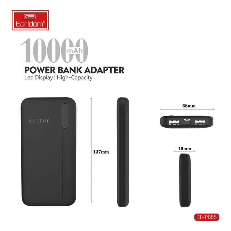 پاوربانک ارلدام مدل ET-PB55 ظرفیت 10000 میلی آمپر ساعت
