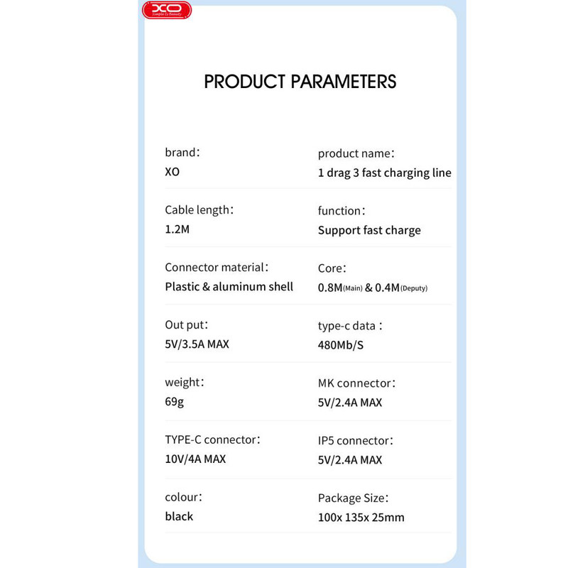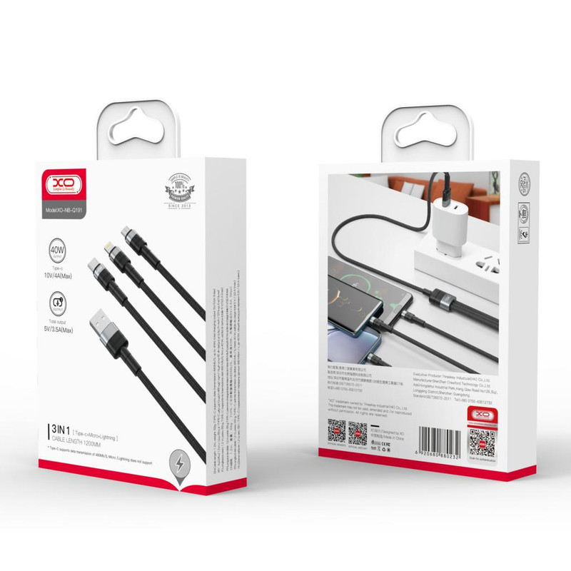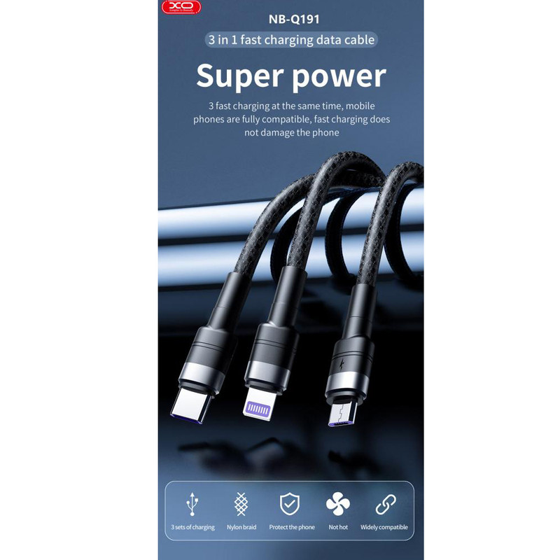 کابل تبدیل usb به usb-c/microusb/لایتنینگ ایکس او مدل nb-q191 طول 1.2 متر