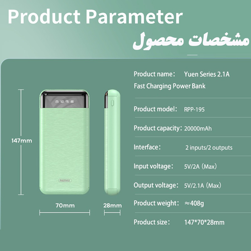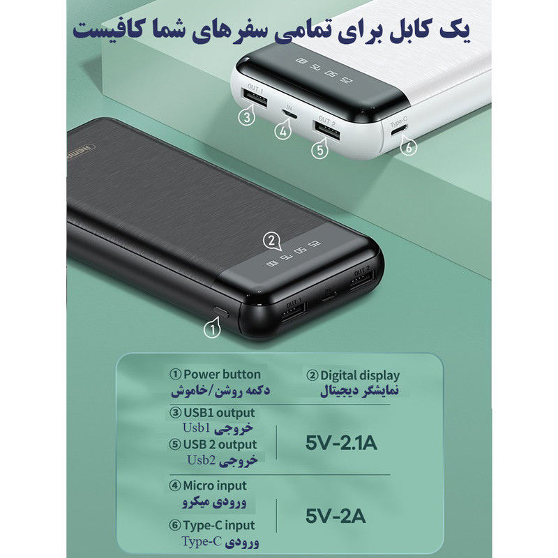 پاوربانک ریمکس مدل RPP-195 ظرفیت 20000 میلی آمپر ساعت