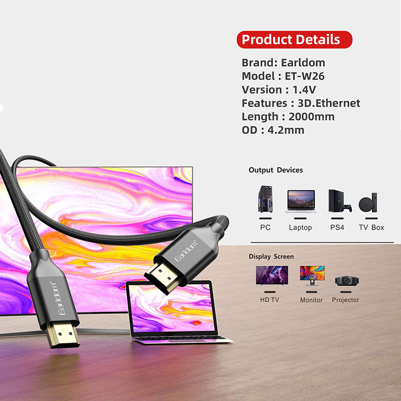 کابل HDMI ارلدام مدل ET-W26 طول 2 متر