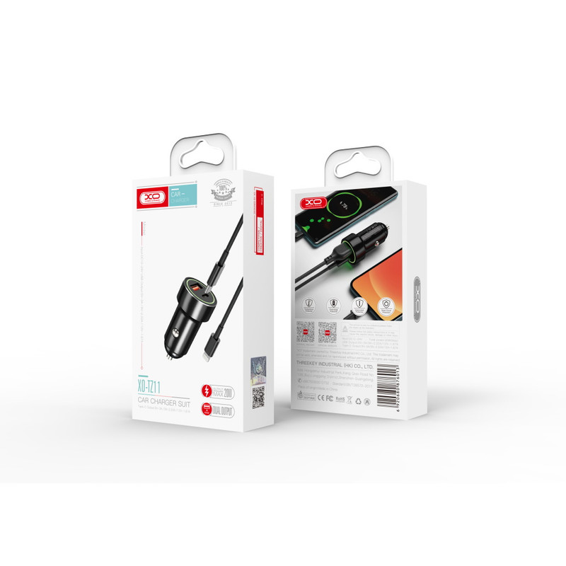 شارژر فندکی 20 وات ایکس او مدل tz11 به همراه کابل تبدیل لایتنینگ