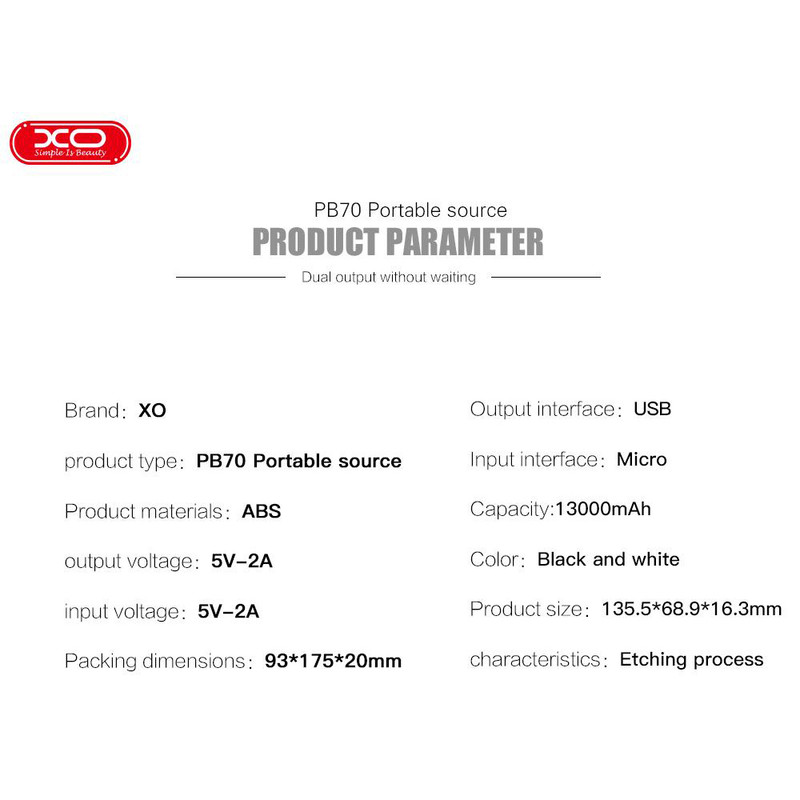پاوربانک ایکس او مدل PB70 ظرفیت 13000 میلی آمپر ساعت