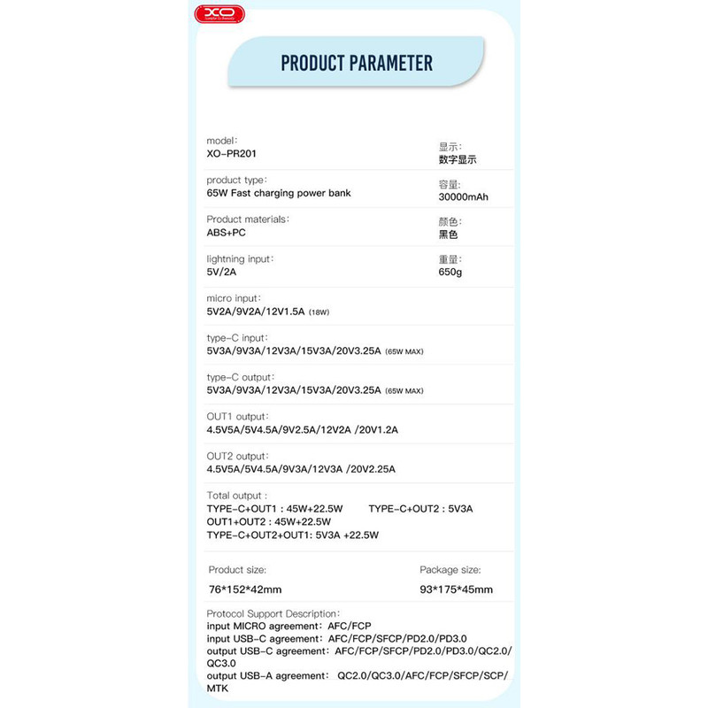 پاوربانک ایکس او مدل PR-201 ظرفیت 30000 میلی آمپر ساعت
