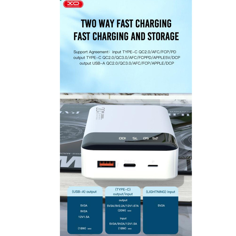 پاوربانک ایکس او مدل pr192 ظرفیت 20000 میلی آمپر ساعت