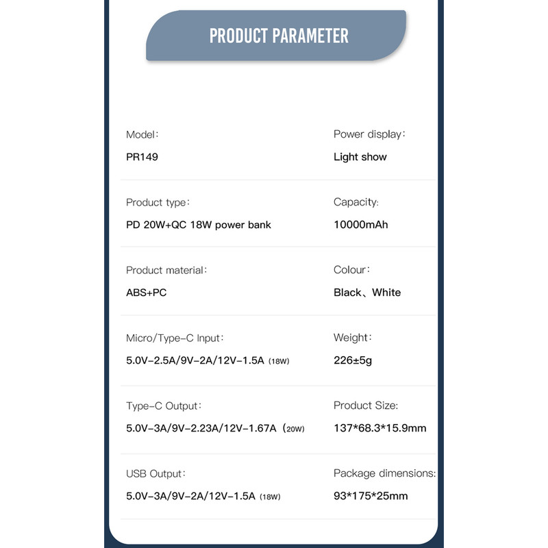 پاوربانک ایکس او مدل pr149 ظرفیت 10000 میلی آمپر ساعت