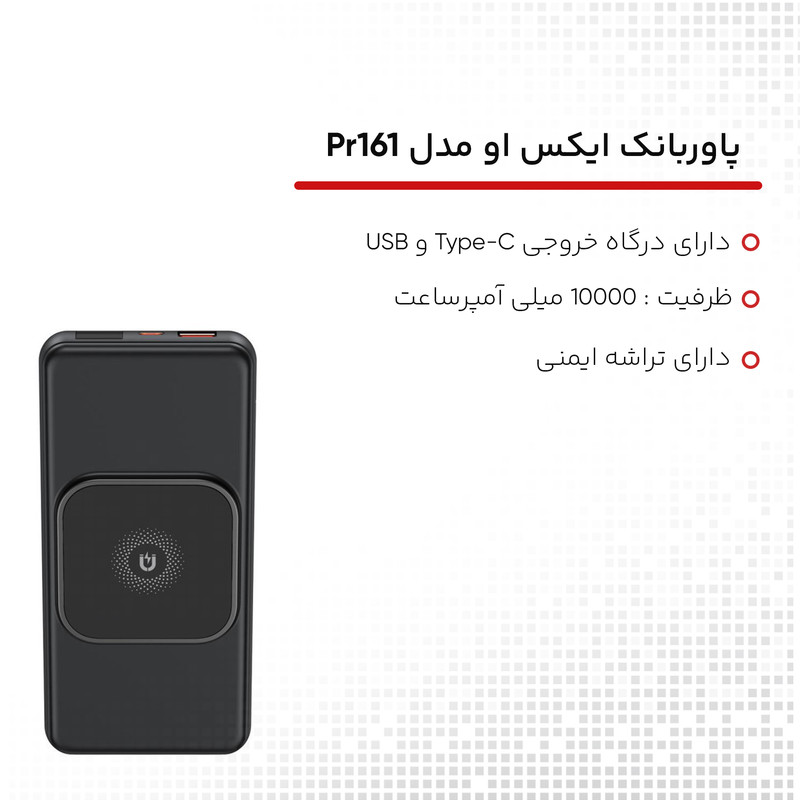 پاوربانک ایکس او مدل pr161 ظرفیت 10000 میلی آمپر ساعت