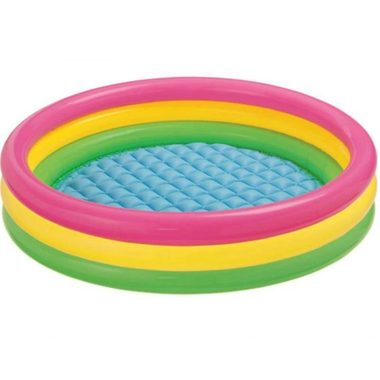 استخر بادی کودک اینتکس کد 57412 که اصطلاحا به آن استخر بادی سه رینگ یا سه حلقه می گویند دارای ارتفاع 25 سانتی متری است. ظرفیت آن تا ارتفاع 18 سانتی متری 131 لیتر می باشد و به عنوان ظرفیت استاندارد آن در نظر گرفته شده است. جدا از اینکه نمیتوان از قیمت مناسب این استخر چشم پوشی کرد به دلیل قطر 114 سانتی متری آن پرطرفدار و پرفروش است. رنگ بندی شاد و متنوع آن کودک را در تفریحات آبی به هیجان میآورد و کودکان شما اوغات خوشی را سپری خواهند کرد. این کالا از جنس پی وی سی با طول عمر بالا و کیفیت مناسب تولید شده است. کیفیت پی وی سی به شما این امکان را میدهد تا استخر را بارها باد کرده و تخلیه کنید با وجود با دوام بودن این استخر شرکت اینتکس در بسته بندی آن برچسب تعمیرات نیز قرار داده است. دیگر ویژگی پیویسی این است که در برابر آفتاب دچار رنگ پریدگی یاپوسیدگی نمیشود.