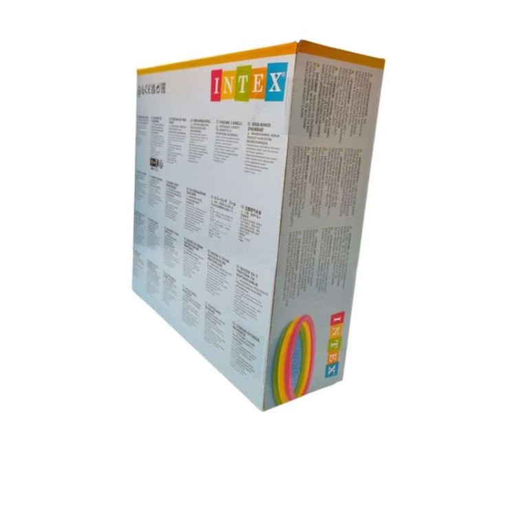 ظاهر استخر به شکل سه حلقه روی هم طراحی شده است. کف آن رنگ آبی و هر حلقه رنگ شاد و متفاوتی دارد ترکیب رنگ این محصول برای کودکان رنگین کمان را به یاد می آورد. به همین علت به آن استخر بادی رنگین کمان نیز میگویند هر رینگ به صورت جداگانه دریچه باد دارد وكف استخر باد شونده است و شما میتوانید در کمترین زمان ممکن آن را باد کنید.