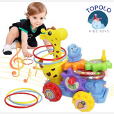 اسباببازی حرکتی کودک زرافه میتواند هنگام حرکت اسباببازی گردن خود را بچرخاند. کودک میتواند رقص و آواز او را تماشا کند که این امر باعث رشد حسی و مهارتهای حرکتی ظریف میشود.