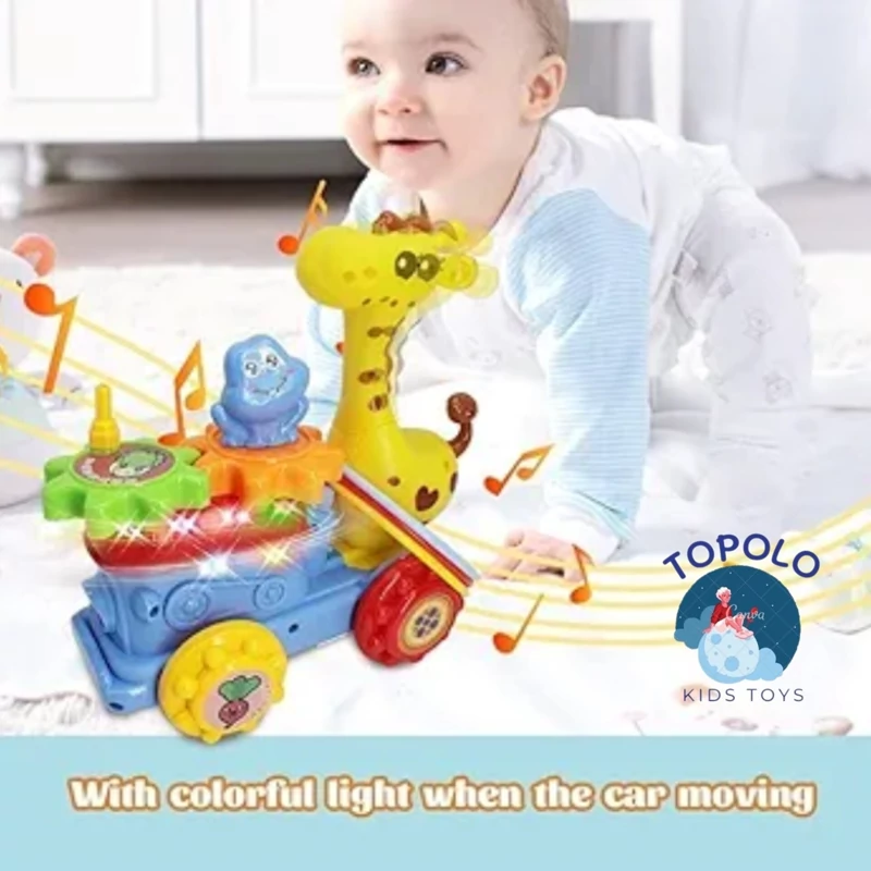 اسباب بازی زرافه ماشین این اسباببازی موزیکال کودک مجهز به چراغ و موسیقی است و به لطف چرخهای جهانی، اسباببازی میتواند هنگام لمس یک جسم به طور خودکار جهت خود را تغییر دهد. به 3 باتری قلمی نیاز دارد (شامل نمیشود).