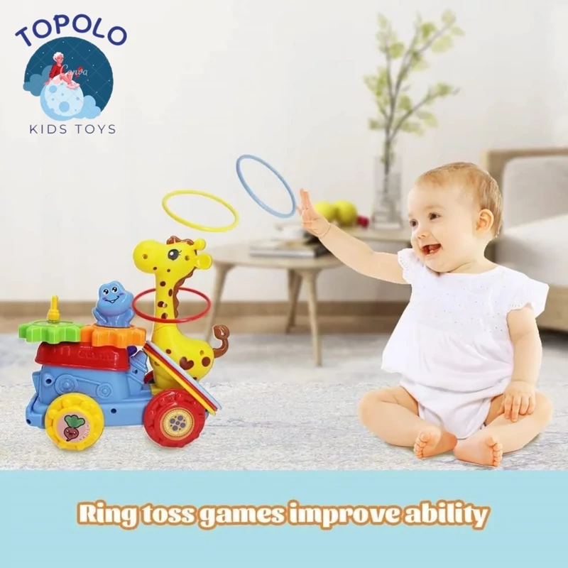 【بازی پرتاب】 این اسباببازی کودک نوپا دارای چرخدندههای رنگارنگ است. با چرخاندن چرخدندهها، کودکان میتوانند هماهنگی دست و چشم خود را تمرین دهند. این یک بازی سرگرمکننده است که در حین رقصیدن، حلقههای زرافه را دور گردن او بیندازید.