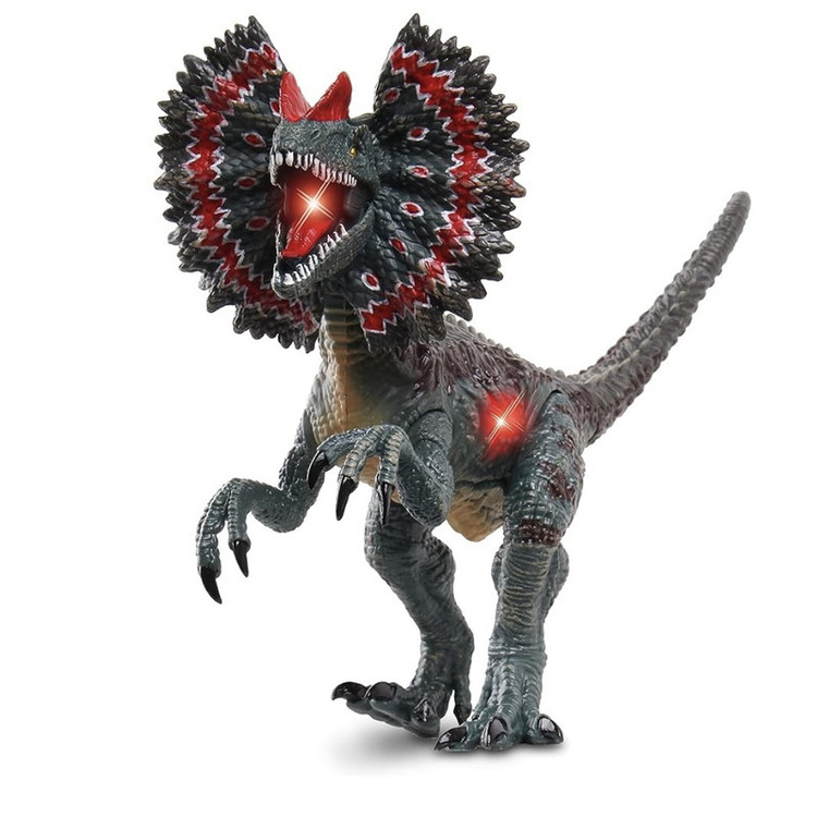 با بالا بردن دست دایناسور روشن میشود و صدا میدهد