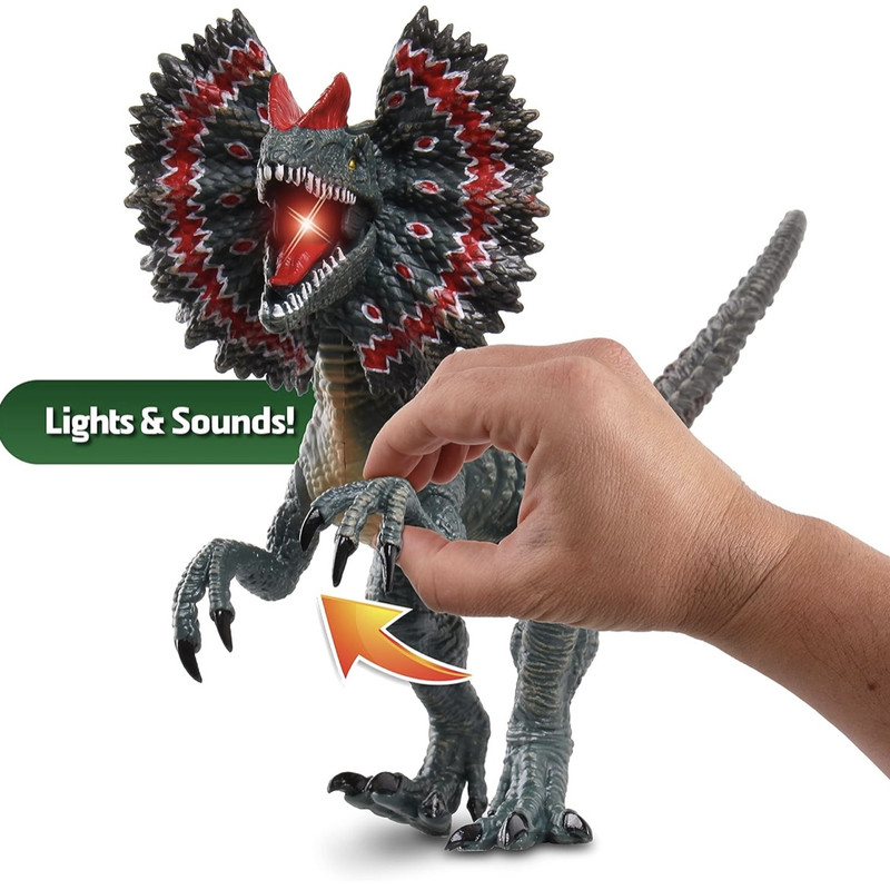 با بالا بردن دست دایناسور روشن میشود و صدا میدهد