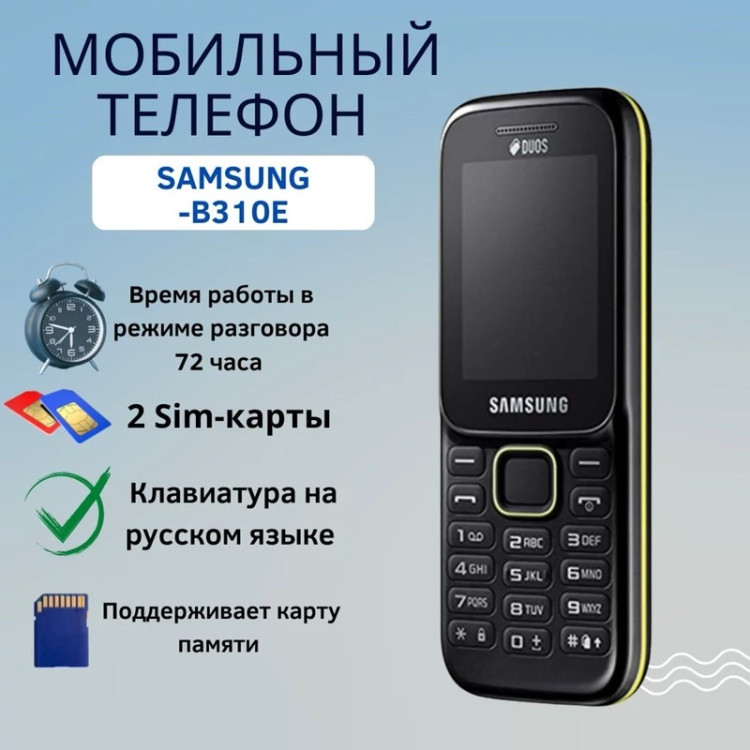 ریجستری شده و دارای کد فعالسازی رنگ مشکی پشتیبانی زبان فارسی کیبورد فارسی دو سیم کارت دارای یک شارژر و هندزفری حافظه داخلی 4 مگابایت بدون سیستم عامل ظرفیت باتری 800 میلیآمپرساعت 2 سیم کارته سایز اصلی (15 × 25 میلیمتر) ابعاد 13.1 × 46.4 × 112.7 میلیمتر وزن 75 گرم ساختار بدنه پلاستیک ويژگيهاي خاص دارای رادیوی FM و چراغ قوه تراشه Single-Core CPU پردازندهي مرکزي 0.208 گیگاهرتز پشتيباني از کارت حافظه جانبي microSD صفحه نمايش رنگي اندازه 2 اینچ رزولوشن 160 × 128 پیکسل تراکم پيکسلي 102 پیکسل بر اینچ تعداد رنگ 64 هزار رنگ شبکه هاي ارتباطي GSM 900 / 1800 گوشی سامسونگ B310E که با نام «Samsung Guru Music 2» نیز شناخته میشود، یک گوشی ساده و دو سیمکارته است که در سال 2014 معرفی شد. این دستگاه برای کاربرانی طراحی شده که به دنبال یک گوشی با عملکرد پایهای، دوام بالا و قابلیتهای صوتی مناسب هستند. مشخصات فنی سامسونگ B310E حافظه داخلی: 4 مگابایت پشتیبانی از کارت حافظه: بله، تا 16 گیگابایت microSD پردازنده: تکهستهای با سرعت 208 مگاهرتز صفحهنمایش: 2 اینچ TFT با وضوح 128x160 پیکسل دوربین: ندارد باتری: Li-Ion با ظرفیت 800 میلیآمپر ساعت (حدود 11 ساعت مکالمه) رادیو FM: بله بلوتوث و وایفای: ندارد سیستمعامل: سیستمعامل اختصاصی سامسونگ ابعاد: 112.7 × 46.4 × 13.1 میلیمتر وزن: حدود 75 گرم رنگها: مشکی ویژگیهای کلیدی دو سیمکارته: امکان استفاده همزمان از دو سیمکارت رادیو FM: امکان گوش دادن به ایستگاههای رادیویی بدون نیاز به اینترنت باتری با دوام بالا: مناسب برای استفاده طولانیمدت بدون نیاز به شارژ مجدد قیمت مقرونبهصرفه: گزینهای اقتصادی برای کسانی که به دنبال یک گوشی ساده هستند اگر به دنبال یک گوشی ساده با قابلیتهای پایهای مانند تماس، پیامک و رادیو هستید، سامسونگ B310E میتواند گزینه مناسبی باشد. این دستگاه با طراحی جمعوجور و باتری با دوام بالا، برای استفاده روزمره و بهعنوان گوشی دوم یا جایگزین گوشی هوشمند در مواقع ضروری مناسب است.
