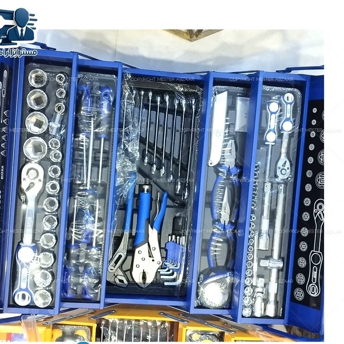 ست 85 عددی جعبه ابزار باس سه طبقه کامل با بکس و جغجغه و انبر قفلی و متر و انبردست و... مدل BS123ST160-75 BOSS