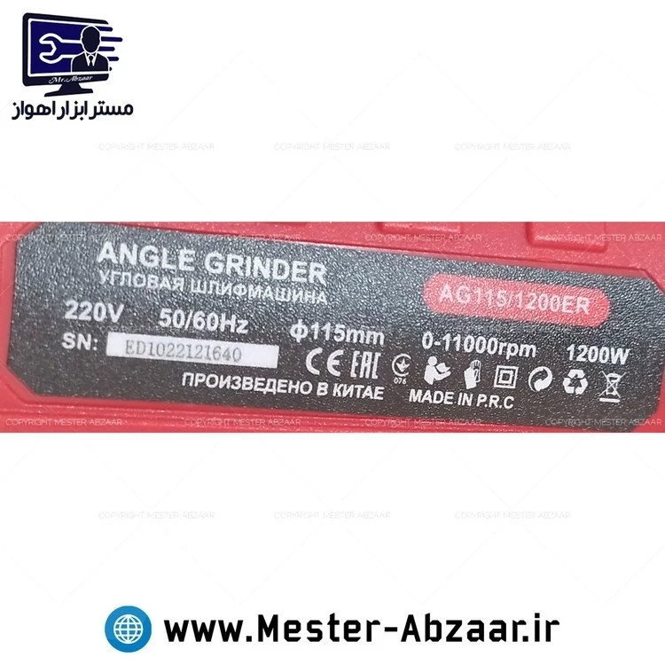 مینی فرز دیمردار 1200 وات صنعتی دسته بلند اصلی ادون جدید کد EDON AG115/1200E