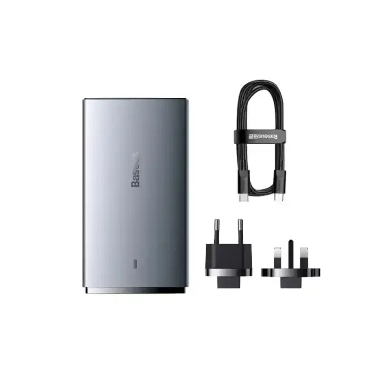 شارژر دیواری دو پورت باسئوس مدل GaN5 Pro Ultra Slim توان 65 وات (همراه کابل)