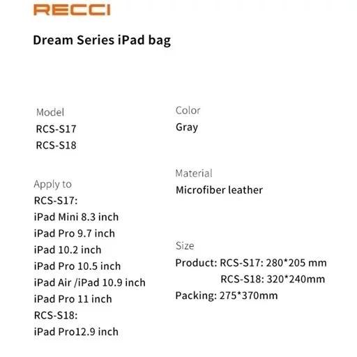 کیف آیپد Recci RCS-S18 با مدل iPad pro 12.9inch سازگار است.