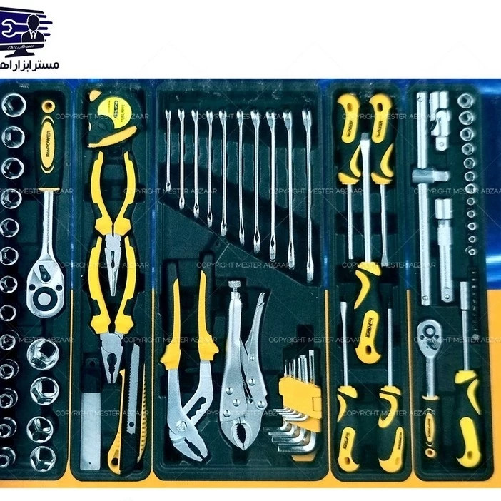 ست 85 عددی جعبه ابزار طرح دیوالت برند نئو پاور سه طبقه کامل با بکس و جغجغه و انبر قفلی و متر و انبردست و... مدل NEO POWER 85PCSاین مجموعه 85 پارچه بسیار نفیس و باکیفیت از برند خوشنام نئو پاور، از تولیدات درجه یک کشور چین است که به همراه یک جعبه ابزار فلزی مستحکم و مقاوم عرضه میشود. این محصول برخلاف جعبههای پلاستیکی یا کیفهای پارچهای عرضهشده برای بسیاری از مجموعههای ابزار، دارای عمری طولانی بوده و سالیان سال میتوانید ابزارهای خود را در این جعبه قرار دهید. این جعبه دارای سه طبقه بوده و با مکانیزم پلکانی از وسط باز میشود. دستههای دوگانه این جعبه نیز از فلز ساخته شده است. این مجموعه از لحاظ تنوع گونه شامل 4 قسمت اصلی است؛ قسمت اول که مهمترین بخش این جعبه را نیز تشکیل میدهد، مجموعه آچار باکس یا اگر بخواهیم صحیحتر بگوییم، Socket Set است. این مجموعه که مطابق با استاندارد متریک است، دارای چندین سری است که همگی از دهانه 1/2 اینچی استفاده میکنند. این سوکتها با اندازههای 10 ،11 ،12 ،13 ،14 ،15 ،16 ،17 ،18 ،19 ،20 ،21 ،22 ،23 ،24 ،27 ،30 ،34 و 36 میلیمتر در اختیار کاربر قرار میگیرند. یک عدد آچار جغجغه 1/2 اینچی با دسته فولادی لاستیکی نیز وظیفه چرخاندن این سوکتها را به عهده دارد. دو عدد اضافه کننده طولی نیز یکی به طول 120میلیمتر و دیگری 250 میلیمتر به همراه یک لق لقه 1/2 اینچی متحرک و یک لق لقه 1/2 اینچی ثابت امکان باز کردن و بستن پیچها را در تنگترین و دور از دسترسترین حالات، امکانپذیر میسازند. قسمت دیگر این مجموعه نیز شامل یک دست آچار، یک سر تخت و یک سر رینگ است. این مجموعه 10 تایی هم مطابق با استاندارد متریک بوده و شامل سایزهای 6، 7، 8، 9، 10، 11، 12، 13، 14، 15، 16 میلیمتر است. قسمت بعدی شامل 5 عدد پیچگوشتی بسیار باکیفیت است؛ سه عدد پیچ گوشتی دوسو و دو عدد پیچ گوشتی چهارسو. سایر ابزارها شامل انبردست، دم باریک، انبر قفلی و بسیاری دیگر از ابزار آلات که در تصویر مشاهده میکنید، است. مشخصات کلی نام ست کامل ابزار نئو پاور طرح دیوالت سیستم کارکرد دستی آلیاژ ساخته شده فولاد کروم _ وانادیوم کشور سازنده چین وزن حدود 12 کیلوگرم تعداد 85 عدد استاندارد متریک