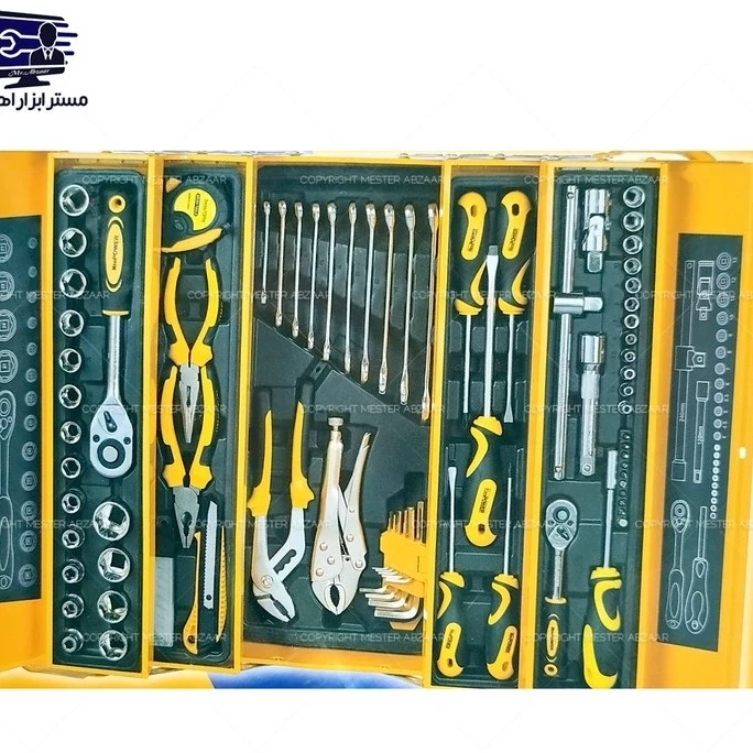ست 85 عددی جعبه ابزار طرح دیوالت برند نئو پاور سه طبقه کامل با بکس و جغجغه و انبر قفلی و متر و انبردست و... مدل NEO POWE