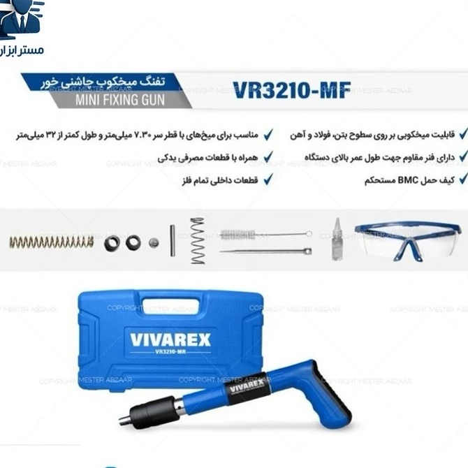 میخکوب چاشنی باروتی سرخود ویوارکس دستی تفنگی با لوازم و کیف مدل VIVAREX VR3210-MF