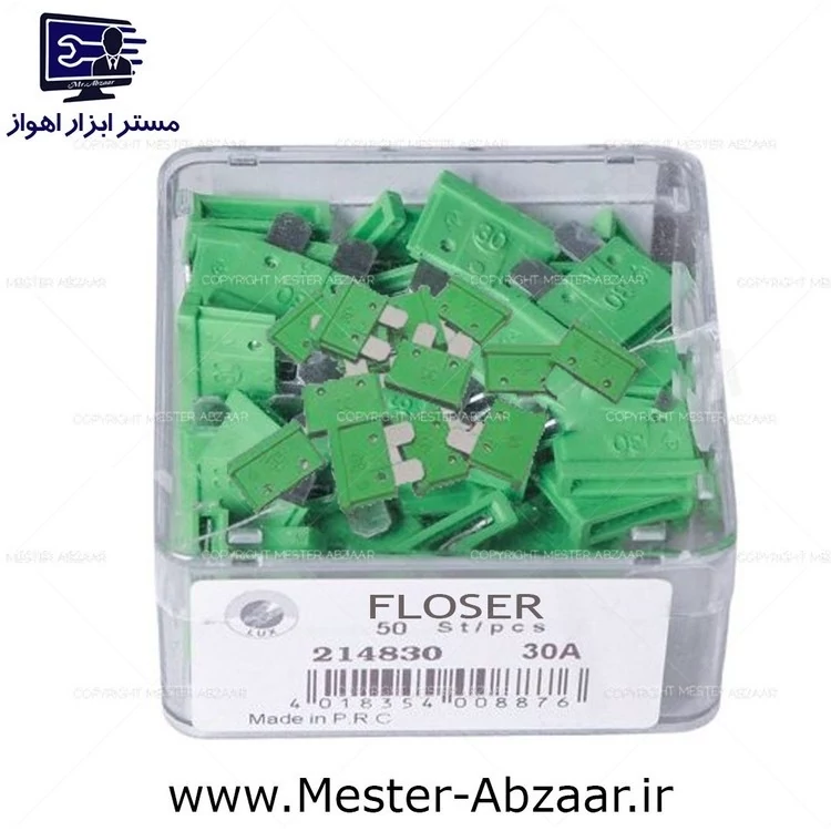 فیوز 30 آمپر لیسانس آلمان سبز کدر ماشین خودرو ایرانی پراید کوییک تیبا برند فلوزر مدل FLOSER 30A