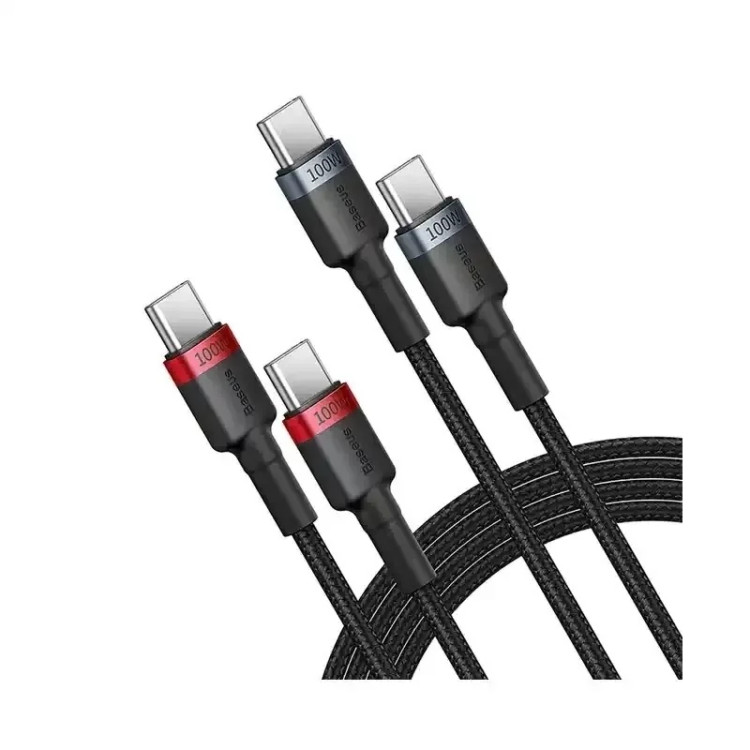 کابل شارژ Type-C to Type-C باسئوس مدل Cafule Series با طول 2 متر 100 وات (2عددی