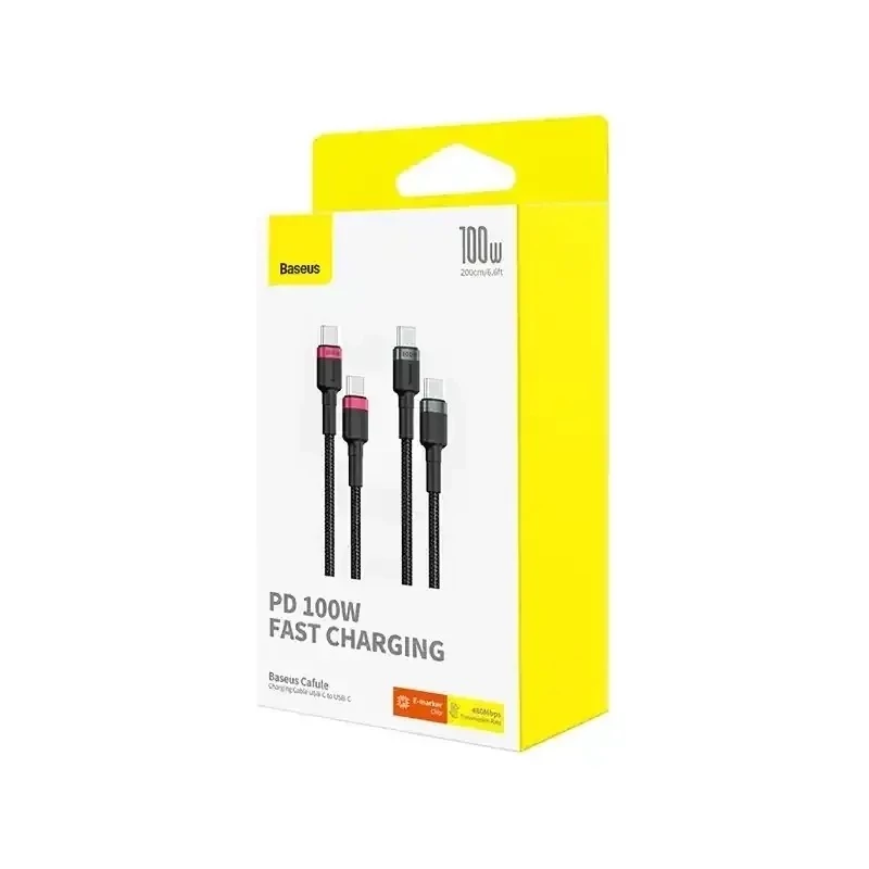 کابل شارژ Type-C to Type-C باسئوس مدل Cafule Series با طول 2 متر 100 وات (2عددی
