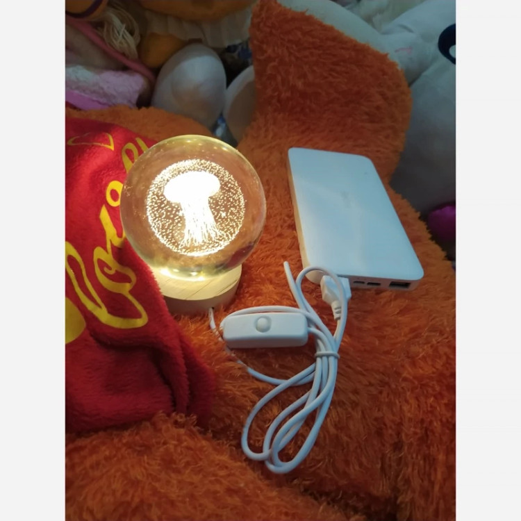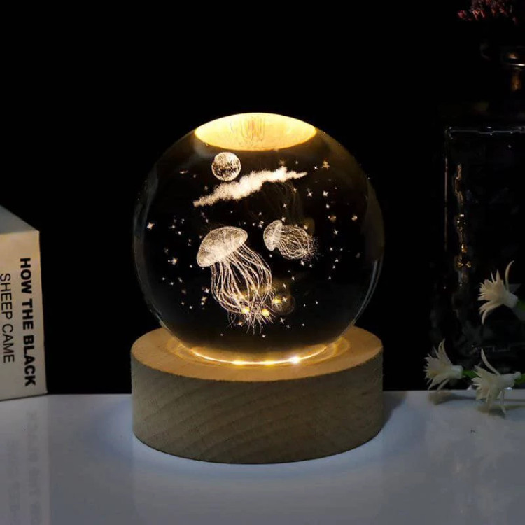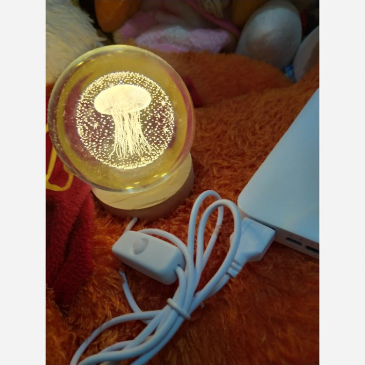 چراغ خواب گوی کریستال طرح عروس دریایی سایز 8 با پایه چوبی