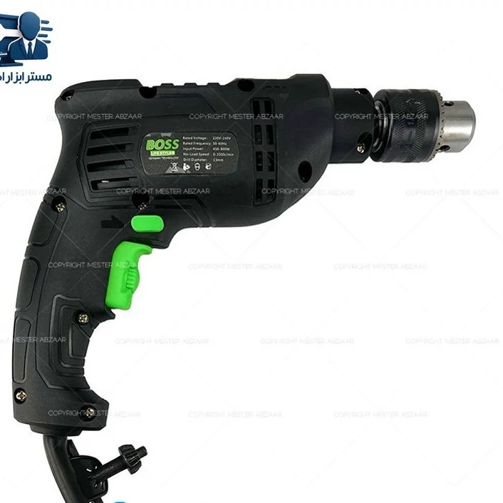 دریل چکشی باس مدل BS1305 مثل همهی دریل ها، موتور را میتوان مهمترین قسمت یک دریل معرفی کرد. این بخش تعیینکنندهی قدرت و سرعت یک دریل است که دریل چکشی باس با داشتن توانی معادل 450-800 وات، امکان فراهم کردن دور موتوری معادل 3300 دور در دقیقه درحالت آزاد و امکان دریل کاری چکشی قدرتی و ایجاد حفره در انواع سطح چوب، آهن و دیوار خانه گزینه مناسبی برای دریل در رنج قدرتی متوسط به بالا میباشد. همچنین به دلیل داشتن قابلیت چپگرد-راستگرد و همچنین سه نظام آچارخور بادوام، دریل چکشی باس یکی از اعضای قدرتمند و ماندگار مجموعه ابزار شما خواهد بود. با طراحی ارگونومیک آن، ساخت چین مناسب مصارف خانگی دریل چکشی باس مدل BS1305 از ارزان ترین و با کیفیت ترین دریلهای چکشی میتوان دریلهای چکشی برند باس را نام برد این برند محصولاتی با قیمت مناسب اما با کیفیت را تولید میکند تا کاربران مبتدی و ماربران خانگی بتوانند به راحتی این دریل ها را تهیه نمایند. دریل چکشی باس مدل 1305 نیز به دلیل امکانات فراتر از سطح قیمت خود و دوام و عمر بالا، مورد توجه مصرفکنندگان خانگی و کارگاهی در انواع مختلف دریل قرار گرفته است.